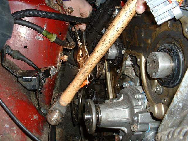 and info on removing the timing belt on an ATX: Use a large C-clamp to compress the